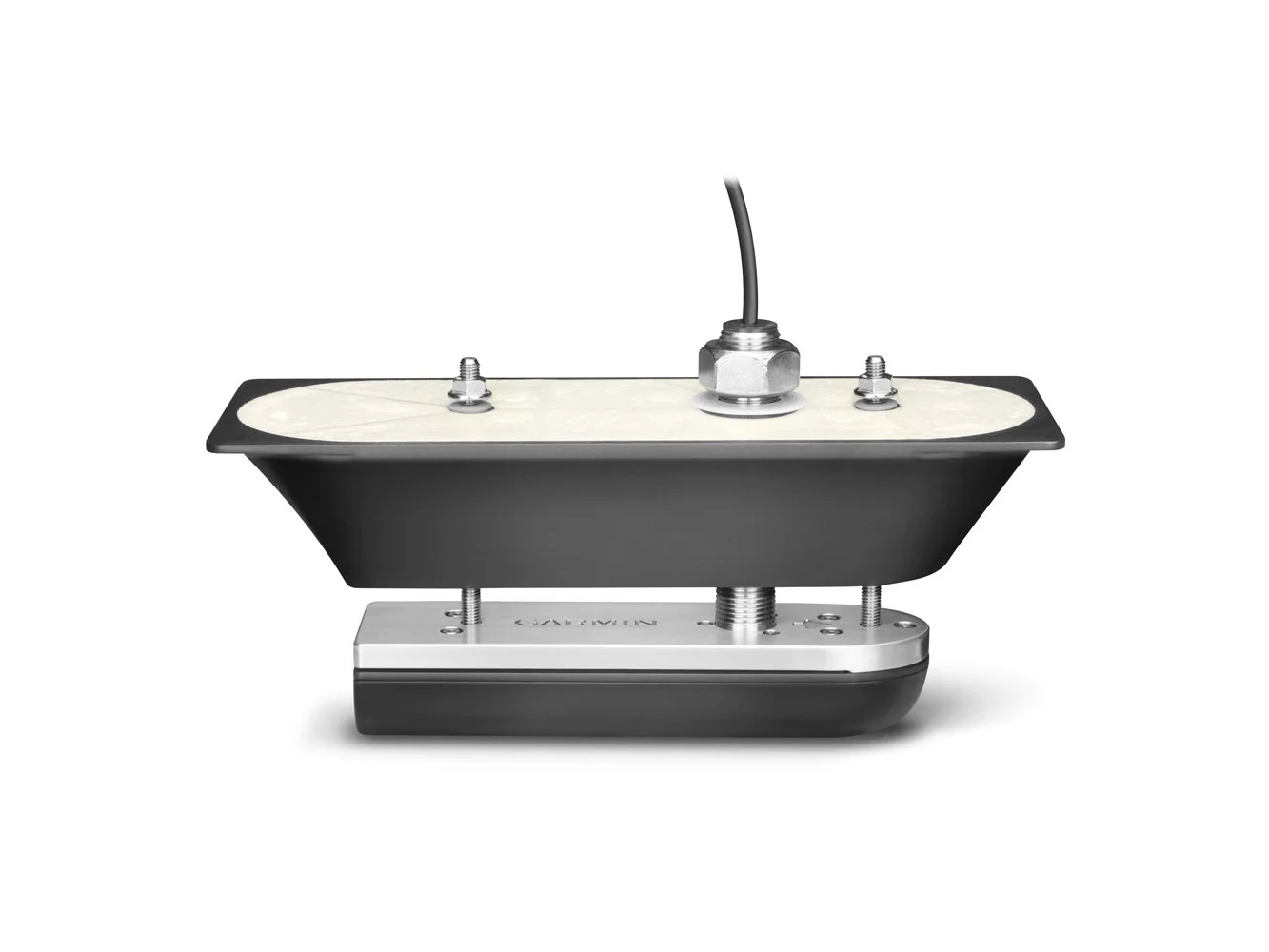 The CHIRP ClearVü/ SideVü elements have a power rating of 500 W per element and operating frequencies of 260/455 kHz. The traditional CHIRP sonar has a power rating of 600 W and operating frequencies of mid-band CHIRP 80-160 kHz. It includes a built-in fast-response temperature sensor. For hull deadrises less than 5 degrees.