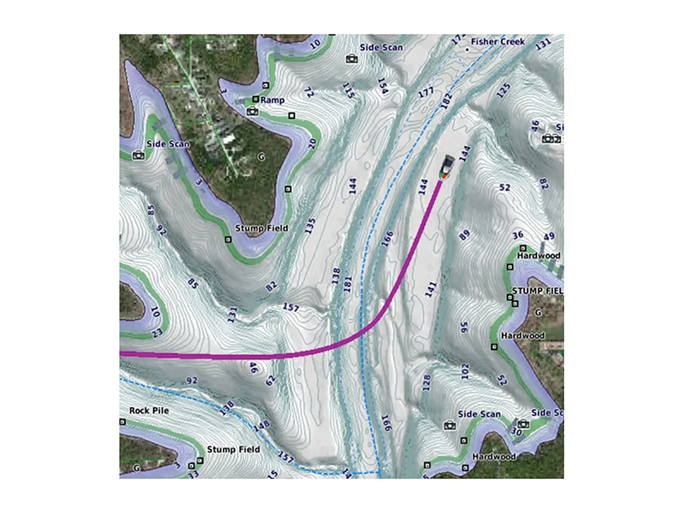 The Auto Guidance feature¹ uses your desired depth and overhead clearance to calculate a route and suggest a path to follow.