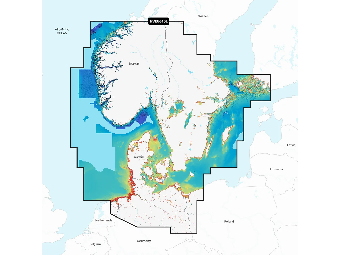 Detailed coverage of the Skagerrak and Kattegat and the approaches to them. Coverage includes the Scandinavian coast from Kristiansund, Norway, to Gavle, Sweden; the Aland Islands; Turku, Finland; the Gotland and Bornholm Islands; the Szczecin Lagoon; the Kiel Canal; and all of Denmark. Ports include Oslo, Norway; Malmo and Stockholm, Sweden; Copenhagen and Aarhus, Denmark; and Hamburg, Germany. Lakes include but are not limited to Lakes Vänern, Vättern, Mjörn, Sommen, and Uddjuar in Sweden and Lakes Mjøsa, Bandak, Flåvatn, Norsjø, and the Telemark Canal in Norway.