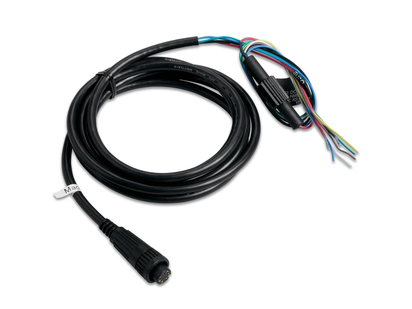 This power and data cable has bare wires at the end, so you can hard wire your GPS directly to a DC power source or other electronic device. This allows you to send speed and position data to devices such as a chartplotter, computer, auto pilot, or radar.