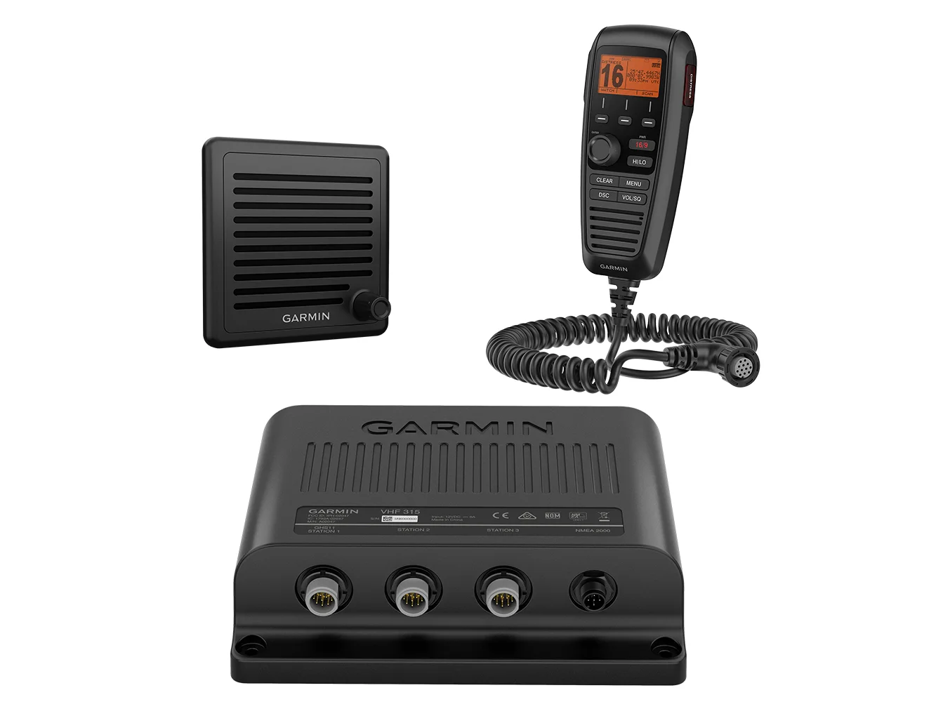 The 25-watt VHF 315 marine radio with Class D DSC is a modular communication solution. It provides the security of reliable communication and full NOAA weather alerts on the water by meeting the latest industry standards. It’s easy to use and integrates seamlessly into the Garmin onboard system. It has a built-in GPS receiver with connector for required external antenna. VHF 315 includes a GHS 11 handset and new active speaker to use as an intercom between up to 3 stations. It’s also equipped with a two-way 30-watt hailer system for communication with other boats or deckhands. NMEA 2000 connectivity enables easy integration with compatible chartplotters, multifunction displays and convenient software updates. Simplified handset connectors and an uncomplicated, easy-to-use interface allow you to get your radio set up quickly, so you can get back out on the water and start communicating.