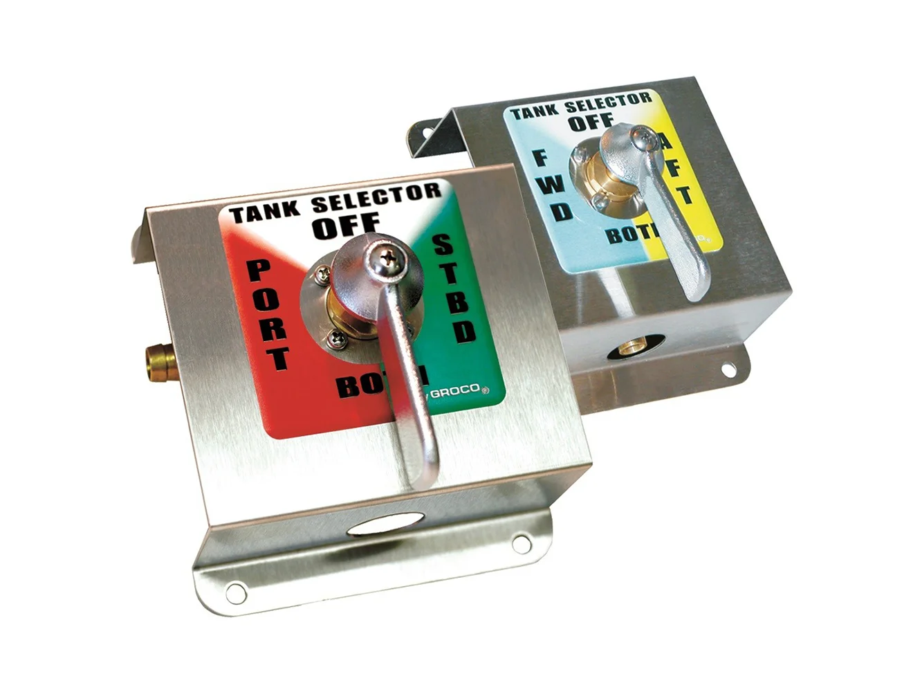 Two labels are provided to match your installation (port/ starboard or fore/aft). Handle can be relocated in 90-degree increments to align plumbing. (Tank selector is a single valve kit, photo is intended to show both labels and not to suggest part contains two valves.)