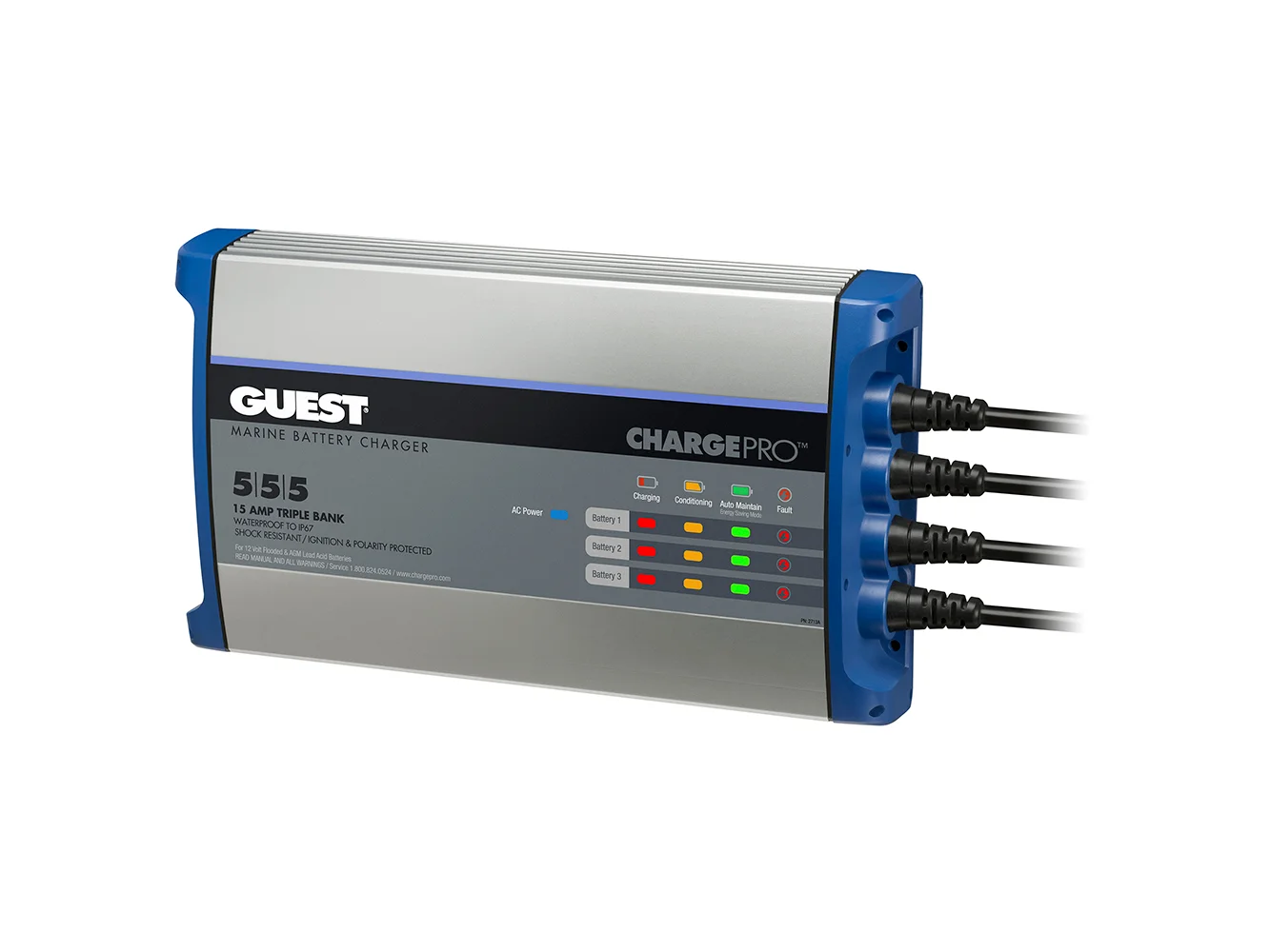 Guest On-Board battery chargers have been redesigned from the inside out with the customer in mind. Our newest generation On-Board Marine battery chargers include leading advancements in digital charging technology and waterproof design/construction. Every Guest charger has a dedicated charging, sensing and control per bank. The easy to read graphics indicates the status of each battery bank through the charging process.