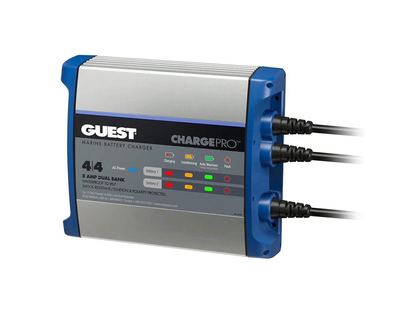 Guest On-Board battery chargers have been redesigned from the inside out with the customer in mind. Our newest generation On-Board Marine battery chargers include leading advancements in digital charging technology and waterproof design/construction. Every Guest charger has a dedicated charging, sensing and control per bank. The easy to read graphics indicates the status of each battery bank through the charging process.