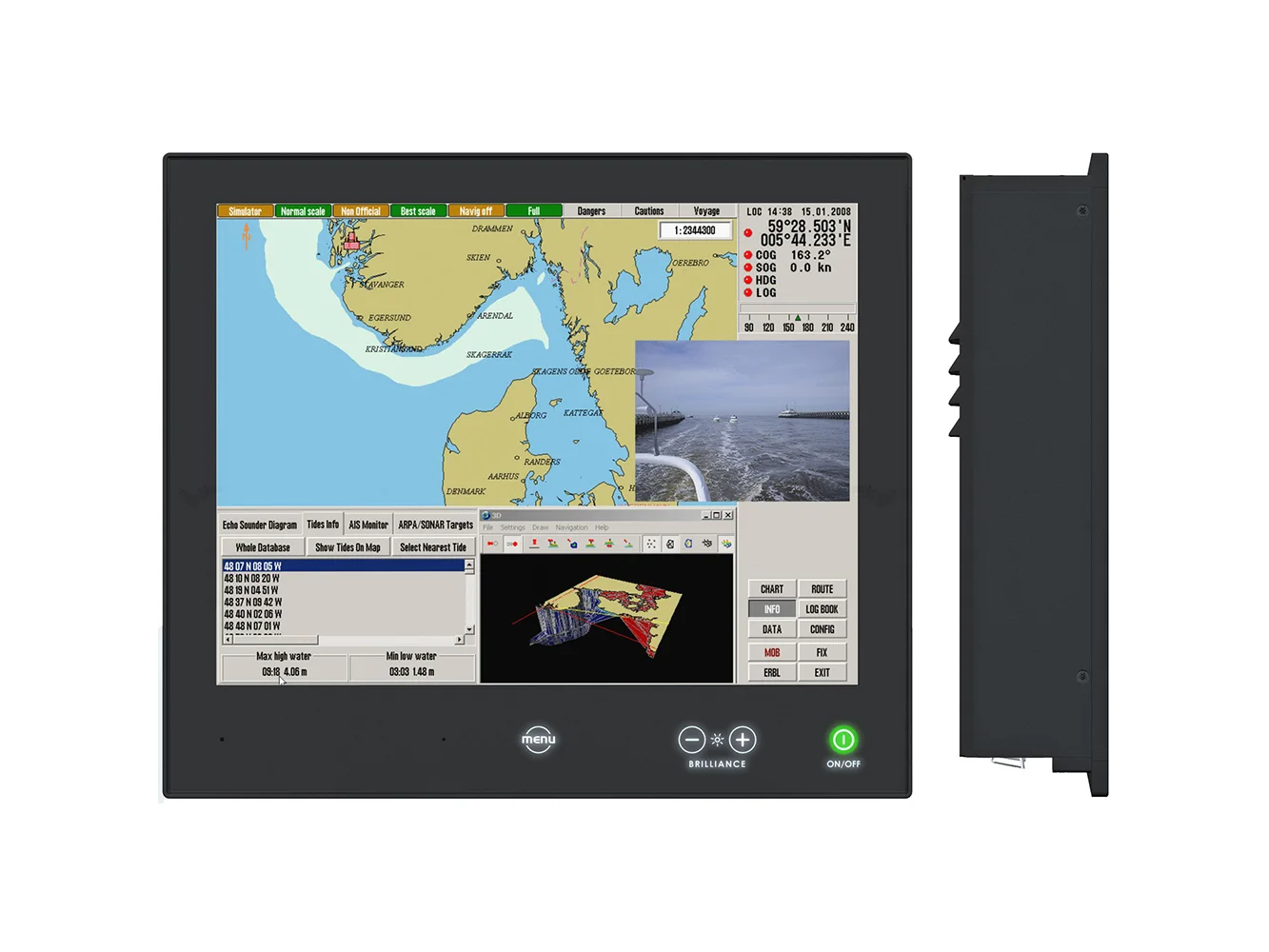 The multi-input MMD models provide a wide choice of display size and format for a multitude of shipboard applications, where combining data and video inputs to a single unit provides maximum flexibility. Be it for ship navigation, automation or security, this range with all it’s possible options provides a robust and multipurpose platform from which to display and manage data and multiple camera or sensor videos.