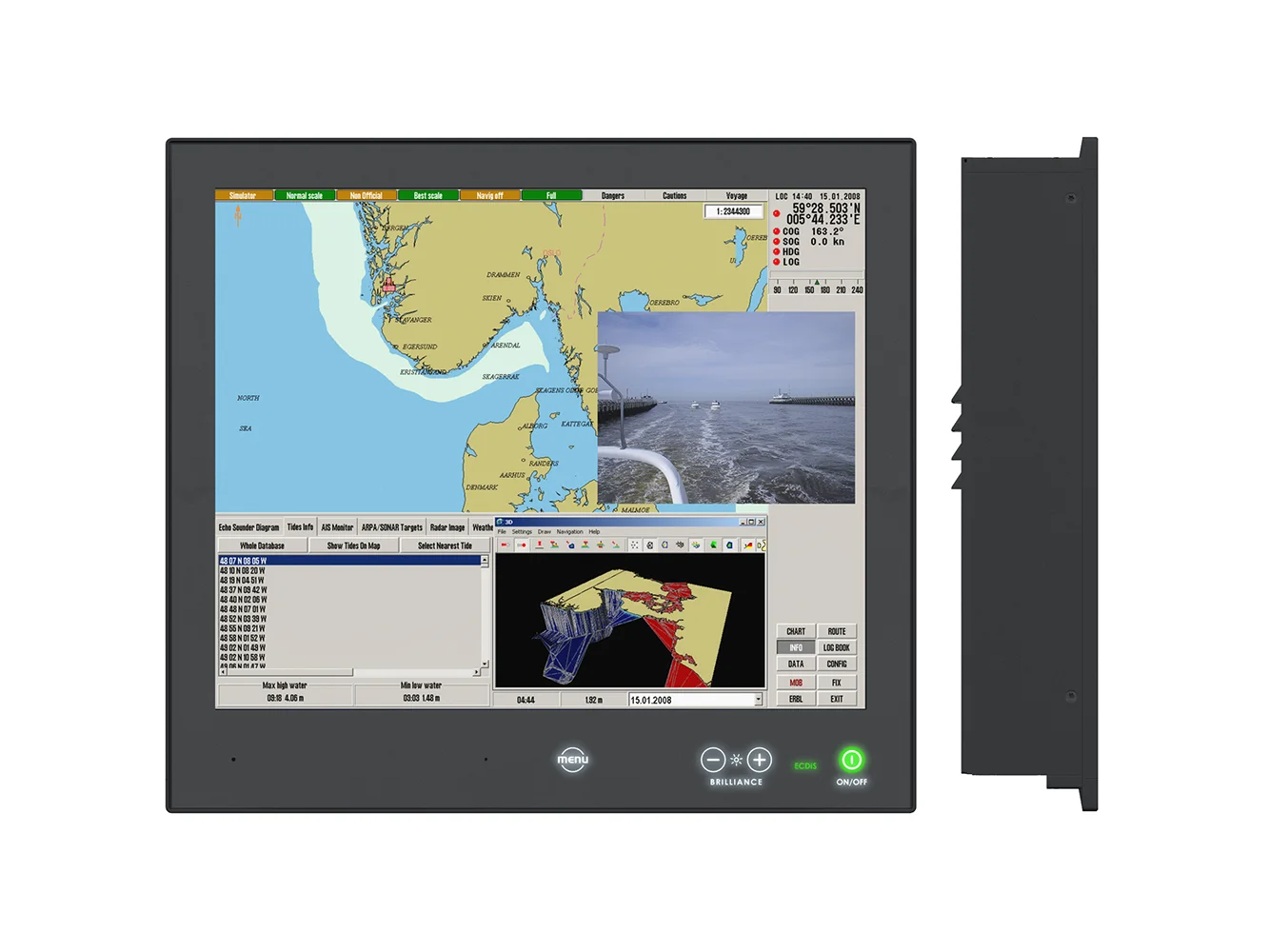 The multi-input MMD models provide a wide choice of display size and format for a multitude of shipboard applications, where combining data and video inputs to a single unit provides maximum flexibility. Be it for ship navigation, automation or security, this range with all it’s possible options provides a robust and multipurpose platform from which to display and manage data and multiple camera or sensor videos.