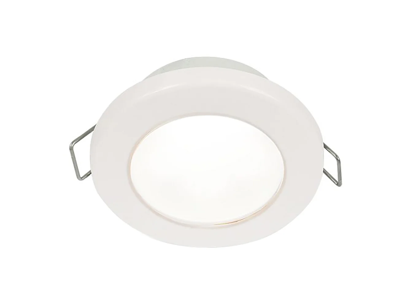 EuroLED 75 3″ Round Spring Mount Down Light – White LED – White Plastic Rim – 12V