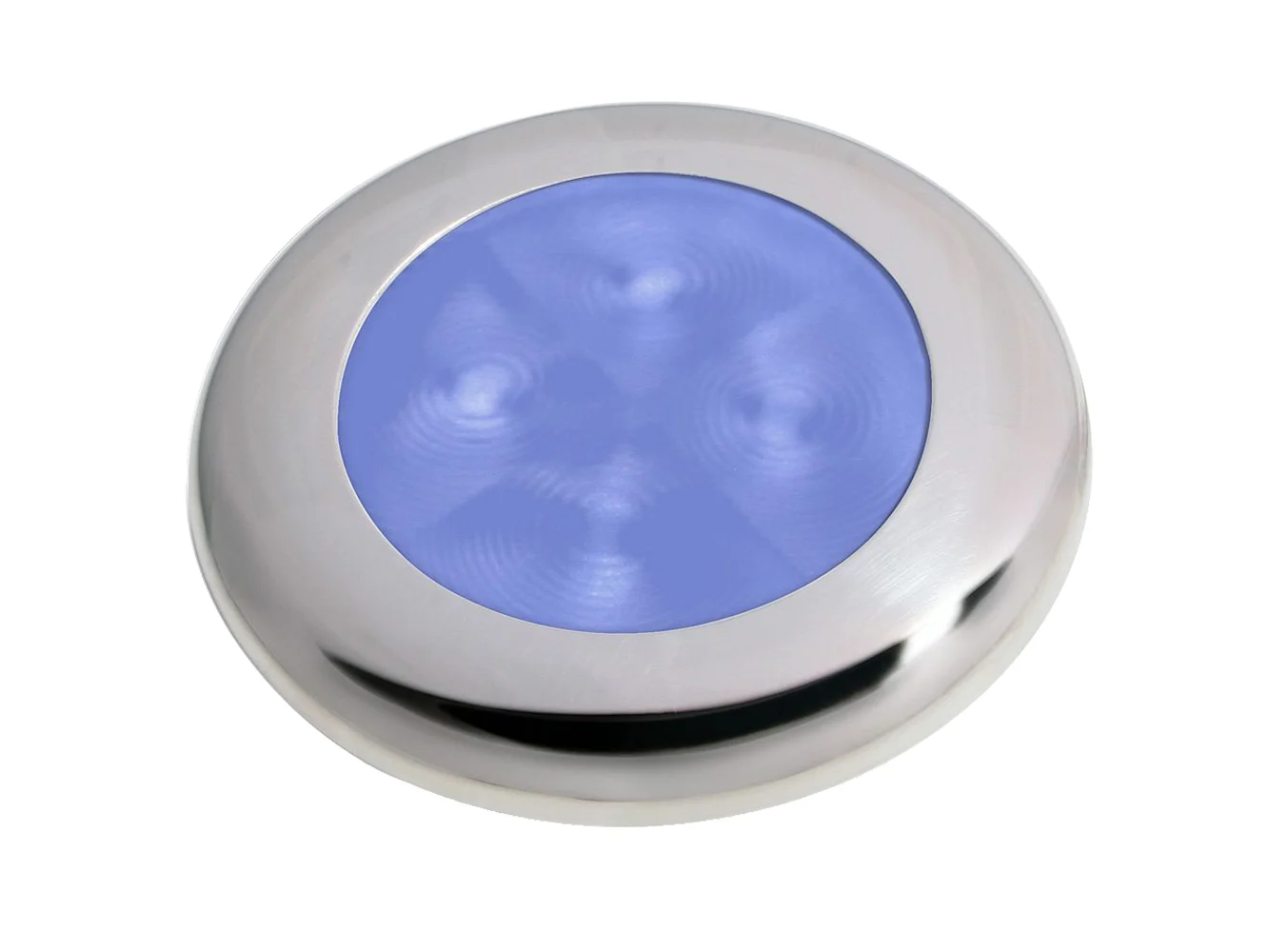 Slim Line LED ‘Enhanced Brightness’ Round Courtesy Lamp – Blue LED – Stainless Steel Bezel – 12V