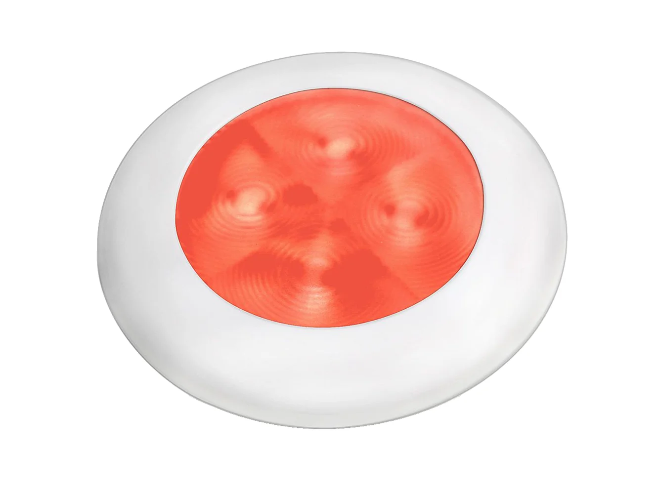 Slim Line LED ‘Enhanced Brightness’ Round Courtesy Lamp – Red LED – White Plastic Bezel – 12V