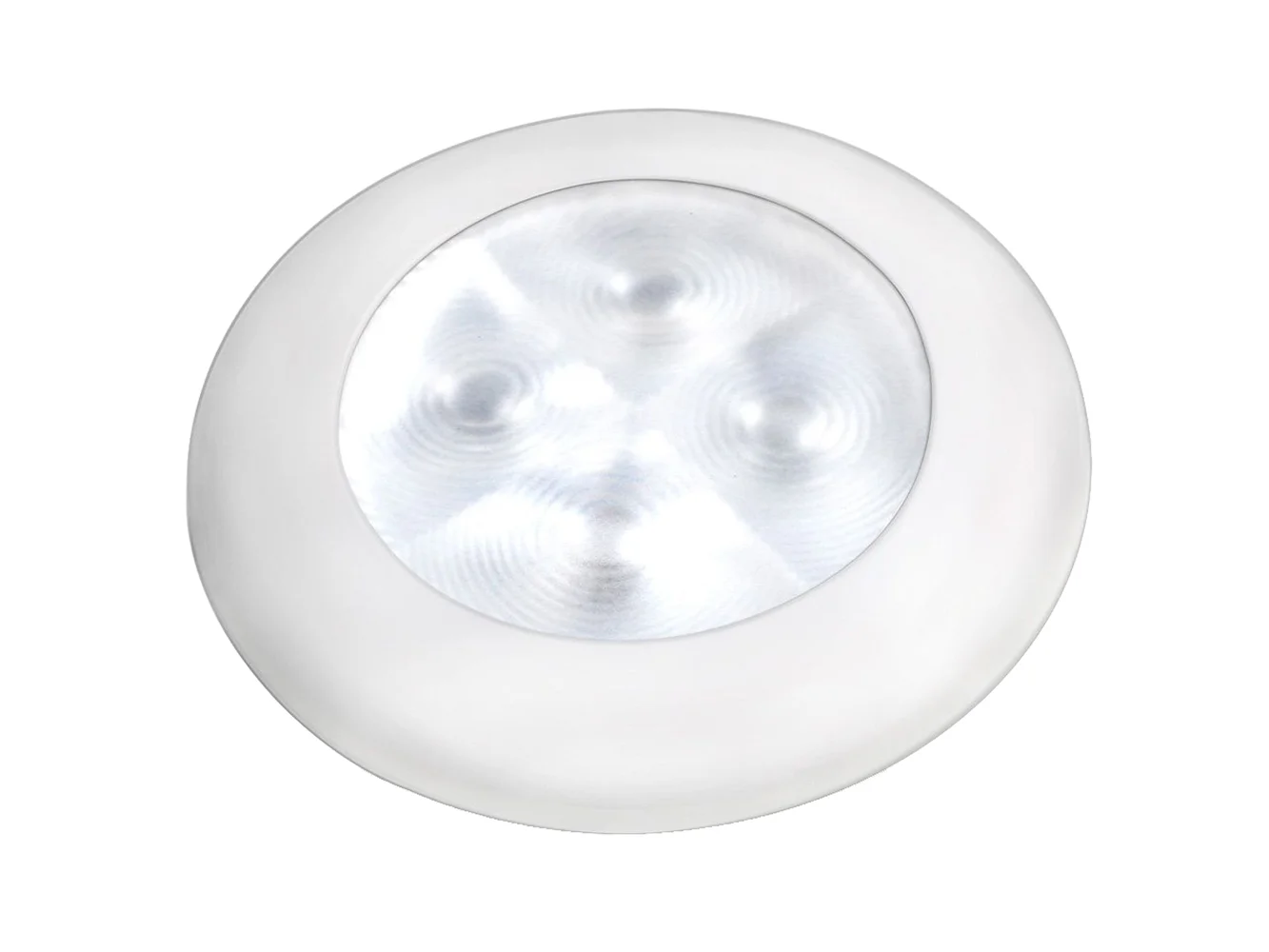 Slim Line LED ‘Enhanced Brightness’ Round Courtesy Lamp – White LED – White Plastic Bezel – 12V