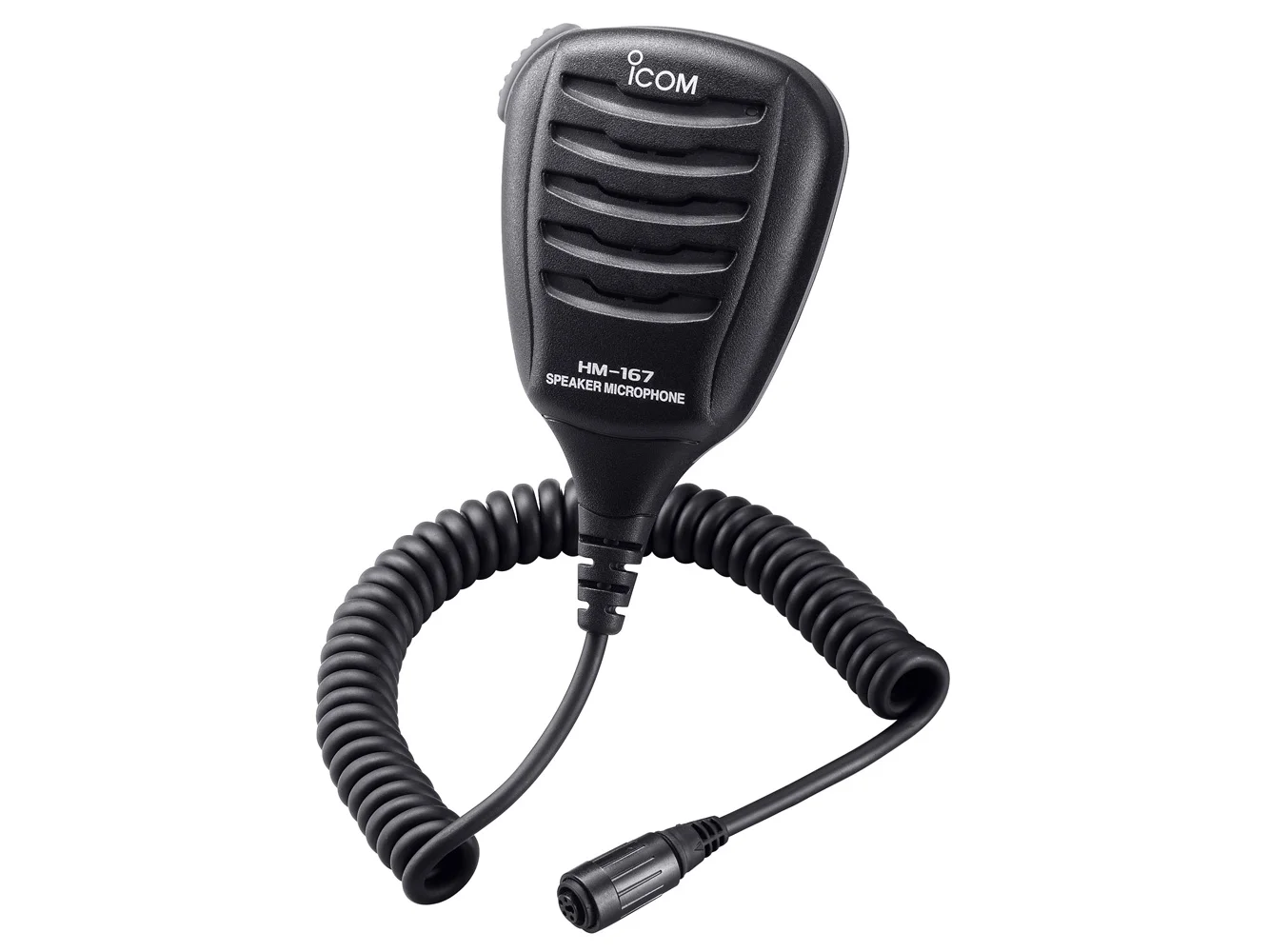 Based on the HM-165, the HM-167 has been designed for marine users who require a lightweight IPX7 waterproof speaker microphone. For use with the Icom M72 handheld VHF.