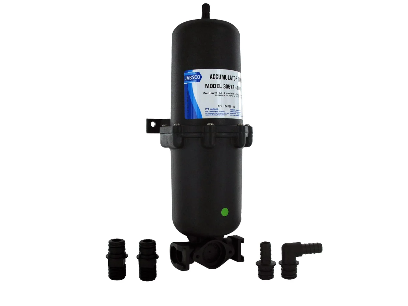 This Accumulator Tank is intended for installation in any pumped water system controlled by a pressure switch. For example, PAR-MATE 2.5 or any Jabsco pressure pumps as found in boats, RV’s, motor caravans, coaches and similar applications.