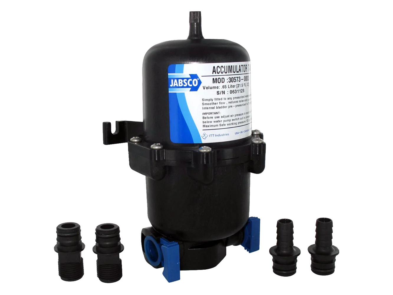 This accumulator tank is intended for installation in any pumped water system controlled by a pressure switch, and may also be used with air-driven pumps. The tank can serve as a storage vessel as well as a pulsation dampener for pressurized fluid. The accumulator tank smoothes water flow and reduces on/off switch cycling of the pump by lessening the variation in pressure and flow between the pump and the system discharge points.The even flow of water gives better control of hot water temperature with systems using instant water heaters.