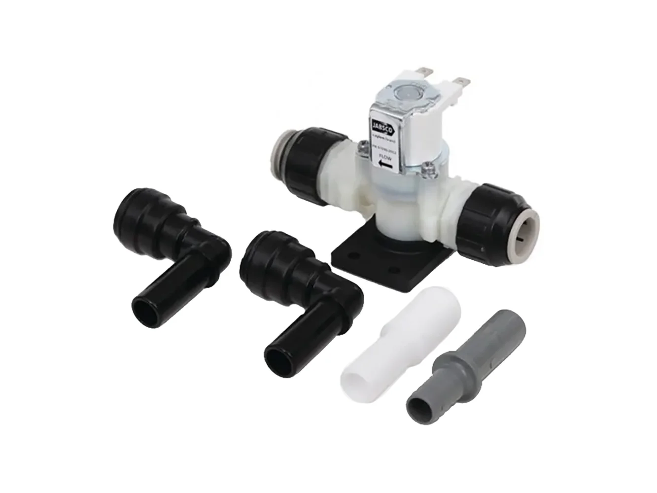 Solenoid valve for use with Quiet Flush fresh water toilets. Inline, normally closed solenoid valve.
