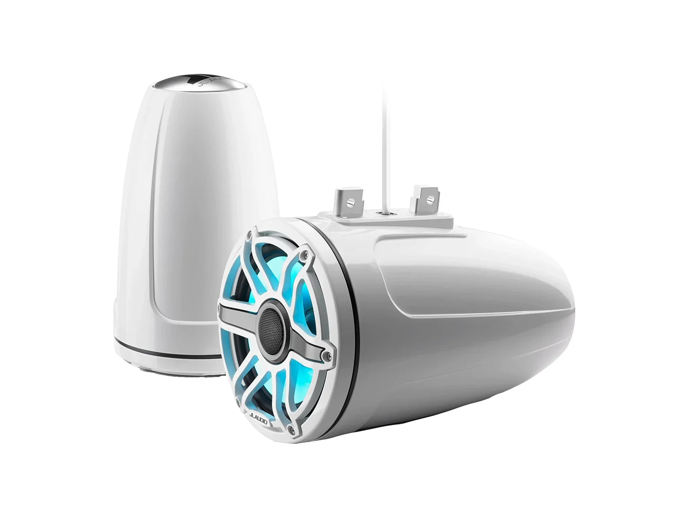 JL Audio M6 Series 7.7″ Enclosed Tower Coaxial System w/Gloss White Classic Grille & Transflective™ LED Lighting – M6-770ETXv3-Gw-S-GwGw-i