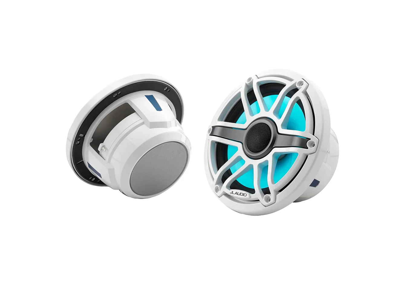 M6 Series 7.7" Marine Coaxial Speakers with Gloss White Sport Grille & Transflective™ LED Lighting – M6-770X-S-GwGw-i