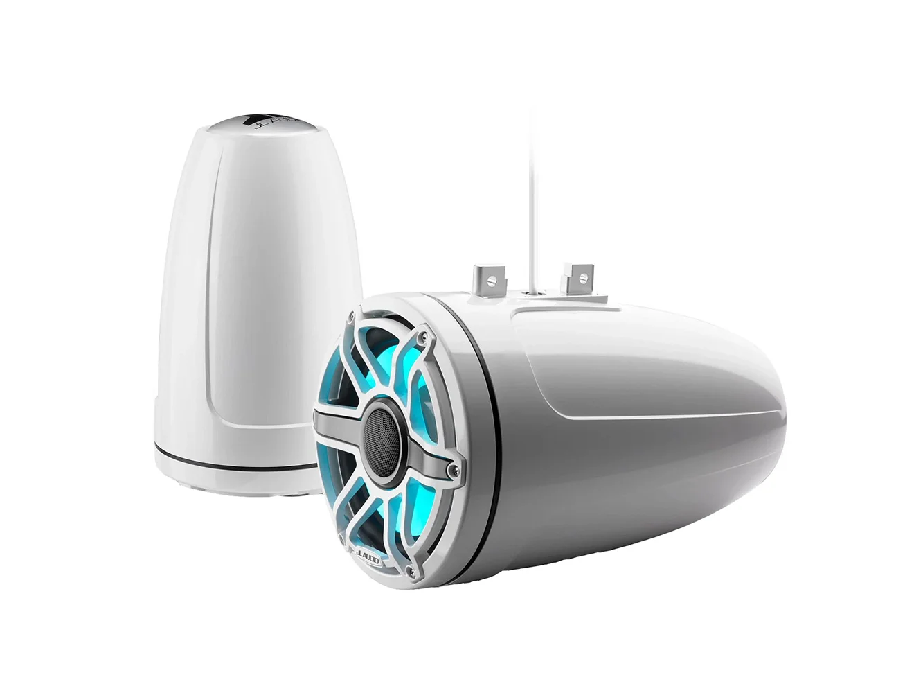 M6 Series 8.8" Enclosed Tower Coaxial System with Gloss White Sport Grille & Transflective™ LED Lighting – M6-880ETXv3-Gw-S-GwGw-i