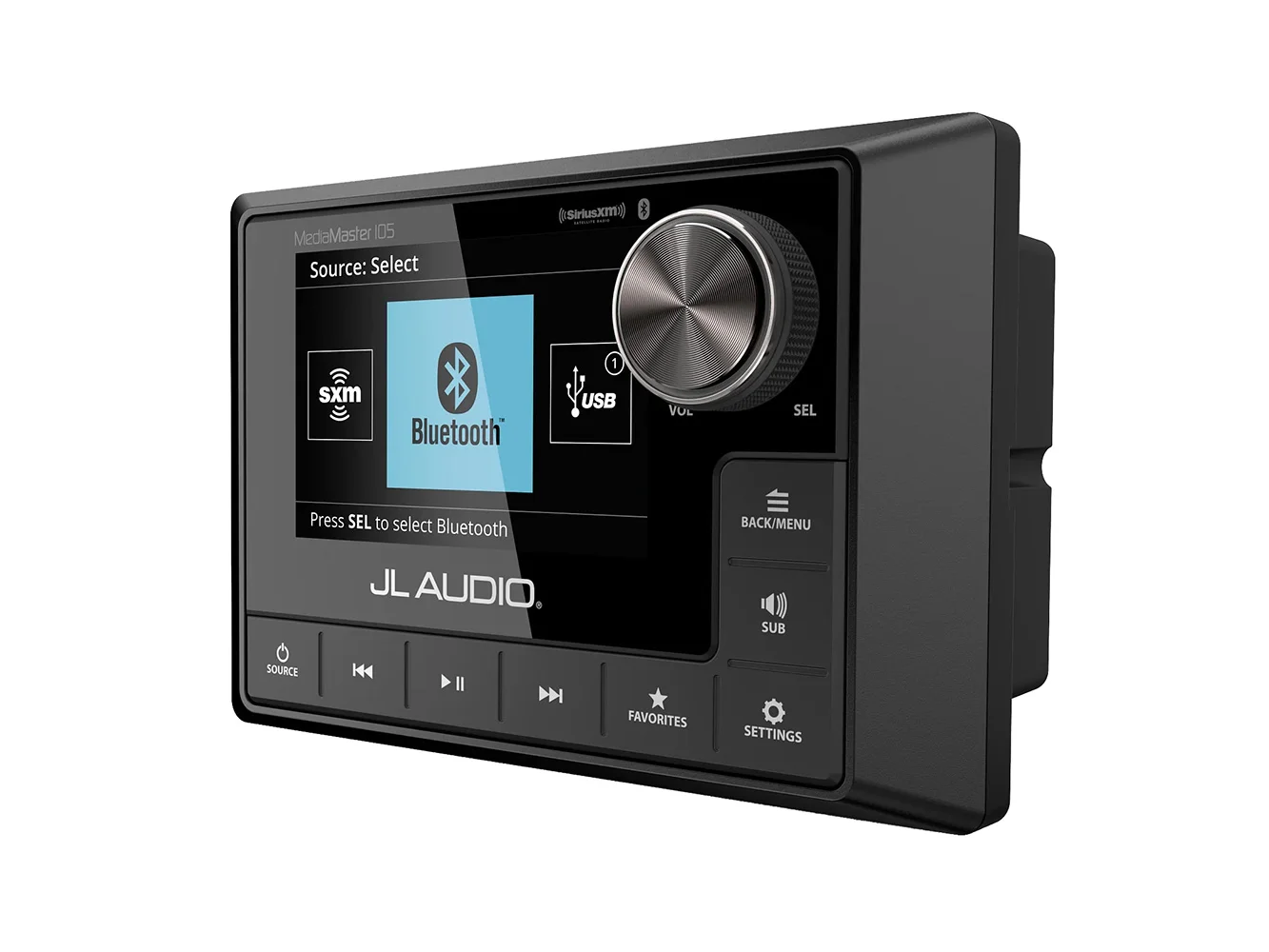 Enjoy great audio wherever your adventures might take you, with the MediaMaster® 105, a Premium Source Unit designed to withstand anything Mother Nature can dish out. This full-featured source unit delivers top-flight sound performance and advanced audio features specifically designed for marine and powersports applications. Its rugged, weatherproof (IP67 rated) chassis houses an ultra-bright, 3.5-inch full-color LCD, with separate Day/Night lighting themes for outstanding visibility, even in bright sunshine. When in motion, you will also appreciate the clean user interface with big text and large backlit controls.
