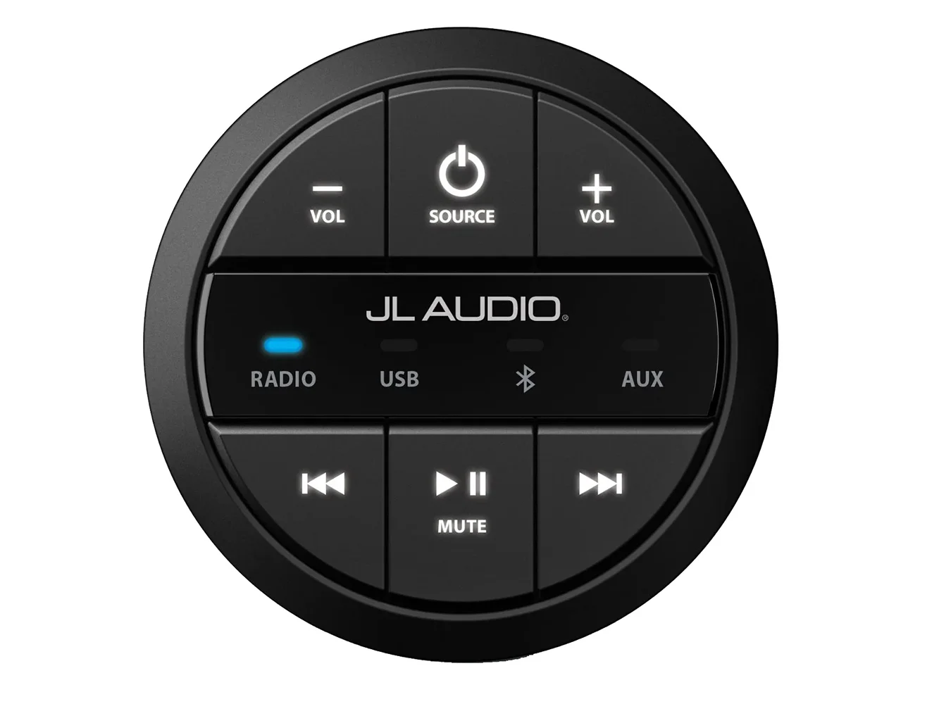 Built for marine and off-road applications, its weatherproof (IP67 rated) design places frequently used functions of your MediaMaster® source unit in a simple, intuitive design that’s easy to use. Its large, backlit controls and LED source indicators are easily identifiable, day or night, with brightness settings that can be adjusted using your MediaMaster® source unit.