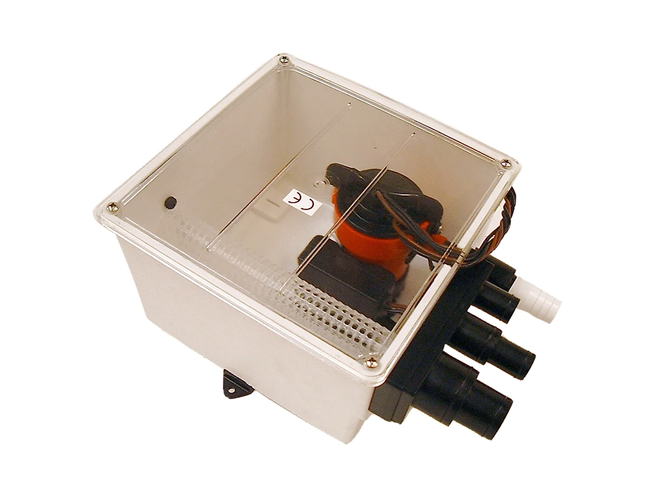 This compact shower sump system is designed to meet the higher demands of today’s boating industry where more equipment is used. This also includes the freshwater system onboard and involves showers, dish-washing machines, galley sinks, etc. The shower sump turns on/off automatically using our Ultima switch technology and has multiple inlet ports for handling wastewater from more than one tapping point. The check valve on the outlet stops water from flowing back into the tank. The tank has a tight-fitting lid to minimize splashing and odors. To further aid in cleaning, the system includes an easily removable mesh filter.