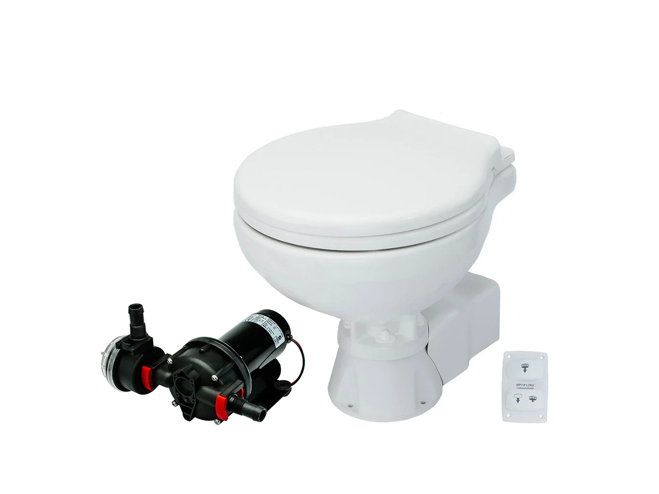 The fine finish and thought-through design of this toilet are remarkable. Made from white vitreous porcelain and with corrosion-resistant parts throughout, this AquaT toilet is quiet and easy to clean. The silent electric model is shipped with a well-proven Aqua Jet diaphragm pump. The AquaT is far from ordinary. Quiet, hygienic, and reliable, the AquaT marine toilet is perfect for almost any marine toilet room.