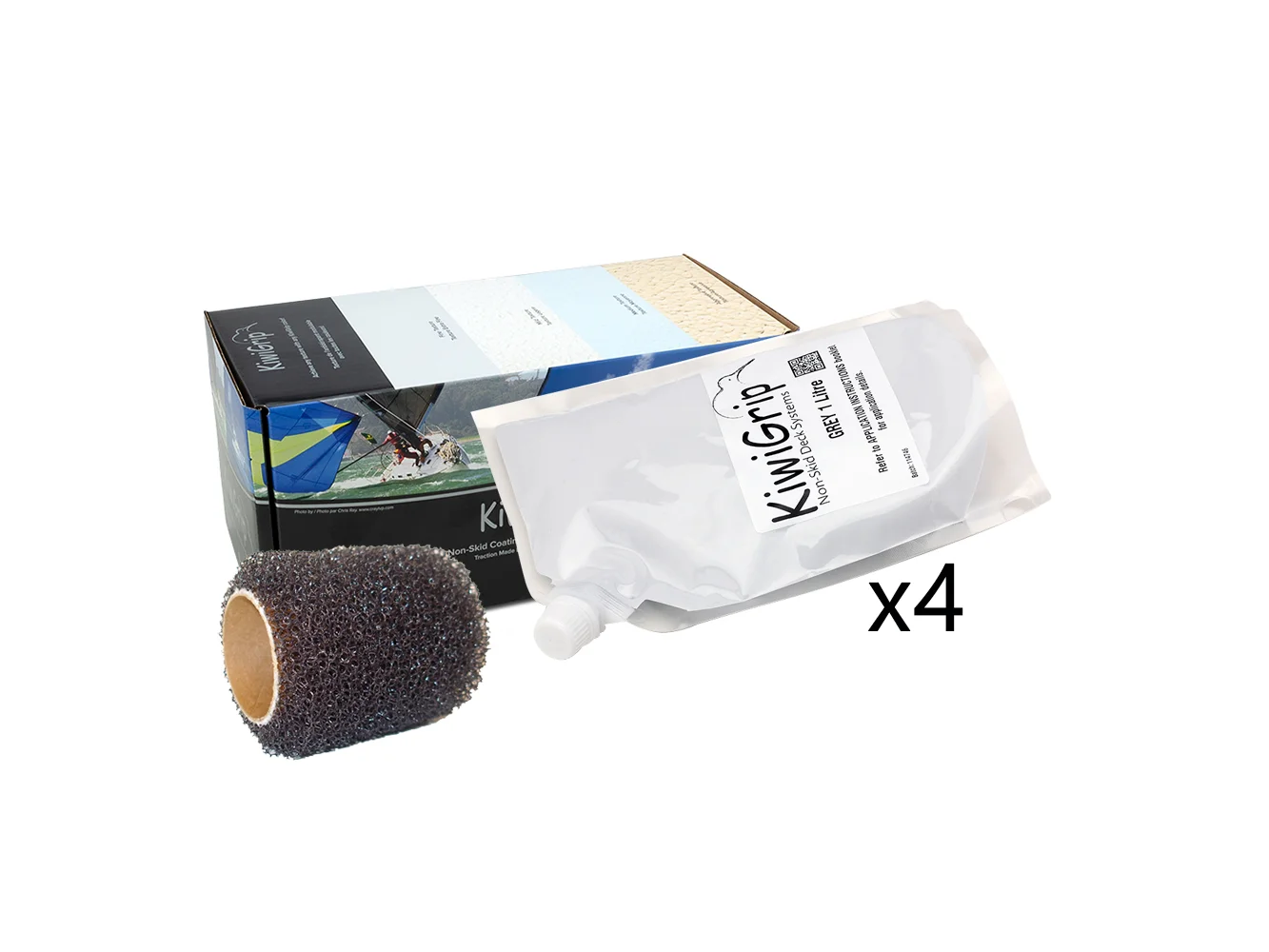 KiwiGrip is a durable, non-skid deck coating system developed by New Zealand yachtsmen specifically for use on boats. Most other traction or anti slip coatings are simply repackaged industrial products.