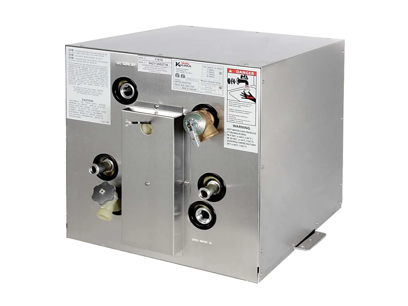 Kuuma’s Premium 6 Gallon Water Heater is perfect for a new installation or as a replacement to an existing water heater. Constructed of corrosion-resistant, marine-quality aluminum and heats water with the use of an electrical power or integrated heat exchanger.
