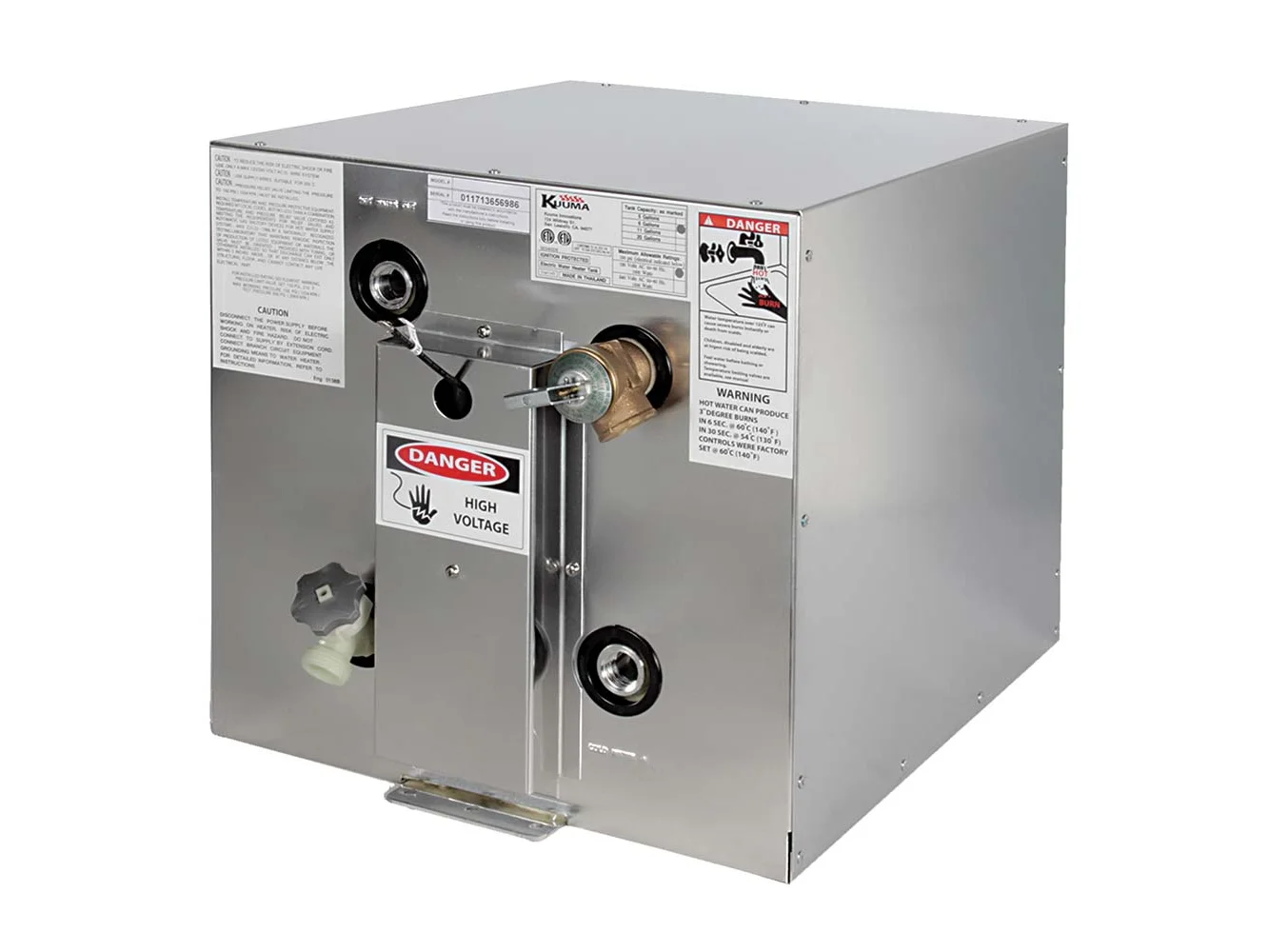 Kuuma’s Premium 6 Gallon Water Heater is perfect for a new installation or as a replacement to an existing water heater. Constructed of corrosion-resistant, marine-quality aluminum and heats water with the use of an electrical power or integrated heat exchanger.