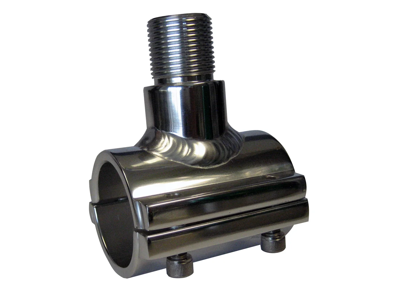 Heavy duty Clamp-On brackets come ready to mount fixed antennas. These brackets are designed to fit standard size aluminum pipe. Constructed from marine grade aluminum, all brackets are anodized after fabrication for 100% anodized protection. These brackets come standard with bright silver anodized finish. Quickly attached or detached with only an Allen Wrench, they are the perfect retro-fit item.