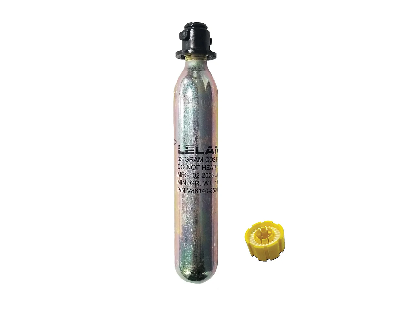- Includes one 33-gram CO2 cylinder with Black Bayonet, Yellow Bobbin/Water Sensing Element, and Instructions