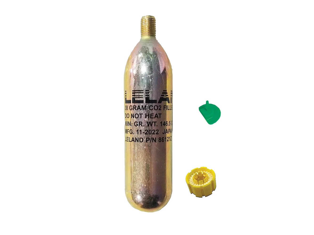 • Includes one 38-gram CO2 cylinder with 3/8" threads, one Green Indicator Pin, Yellow Bobbin/Water Sensing Element, and Instructions