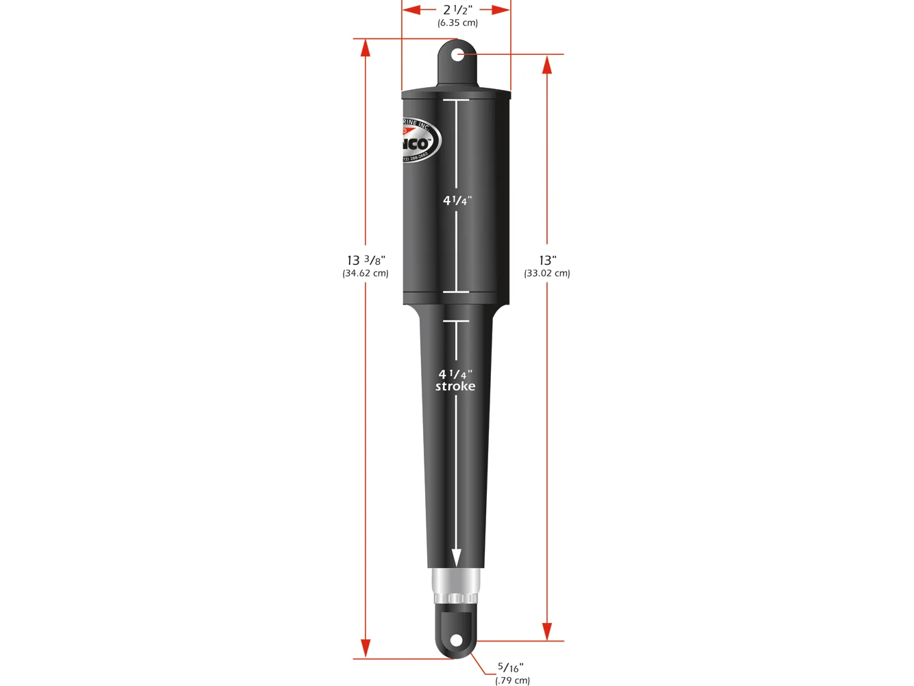 The 102 Actuator is used with Trolling Tab systems sold prior to 2000 and OEM applications. 4.25 stroke. Overall length (tip to tip) is 14 inches. Instant response electric actuators are made of high impact glass fiber filled, ultraviolet-resistant nylon material with 316 super buff stainless steel tubing.