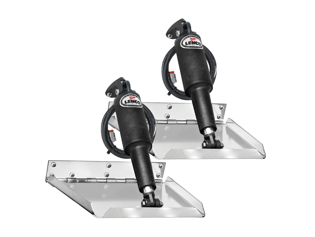 Upgraded electro-polished trim blades with stouter 1/4″ diameter hinge pin make these Performance Trim Tab Kits a cut above the base level Lenco Standard Mount Kits. Equipped with the same fast response electric actuators for precise control. Fully submersible with all Plug & Play Deutsch connections. Blades are Electro-Polished 12 gauge – 304 SS with 1″ turned up edges (the 16″ x 12″ and the 18″ x 14″ have an 85 degree inside taper) and 1/4″ diameter hinge pin. Kit includes Standard Actuators with 5/16″ SS bolts. The actuators mount at the trailing edge of the blades