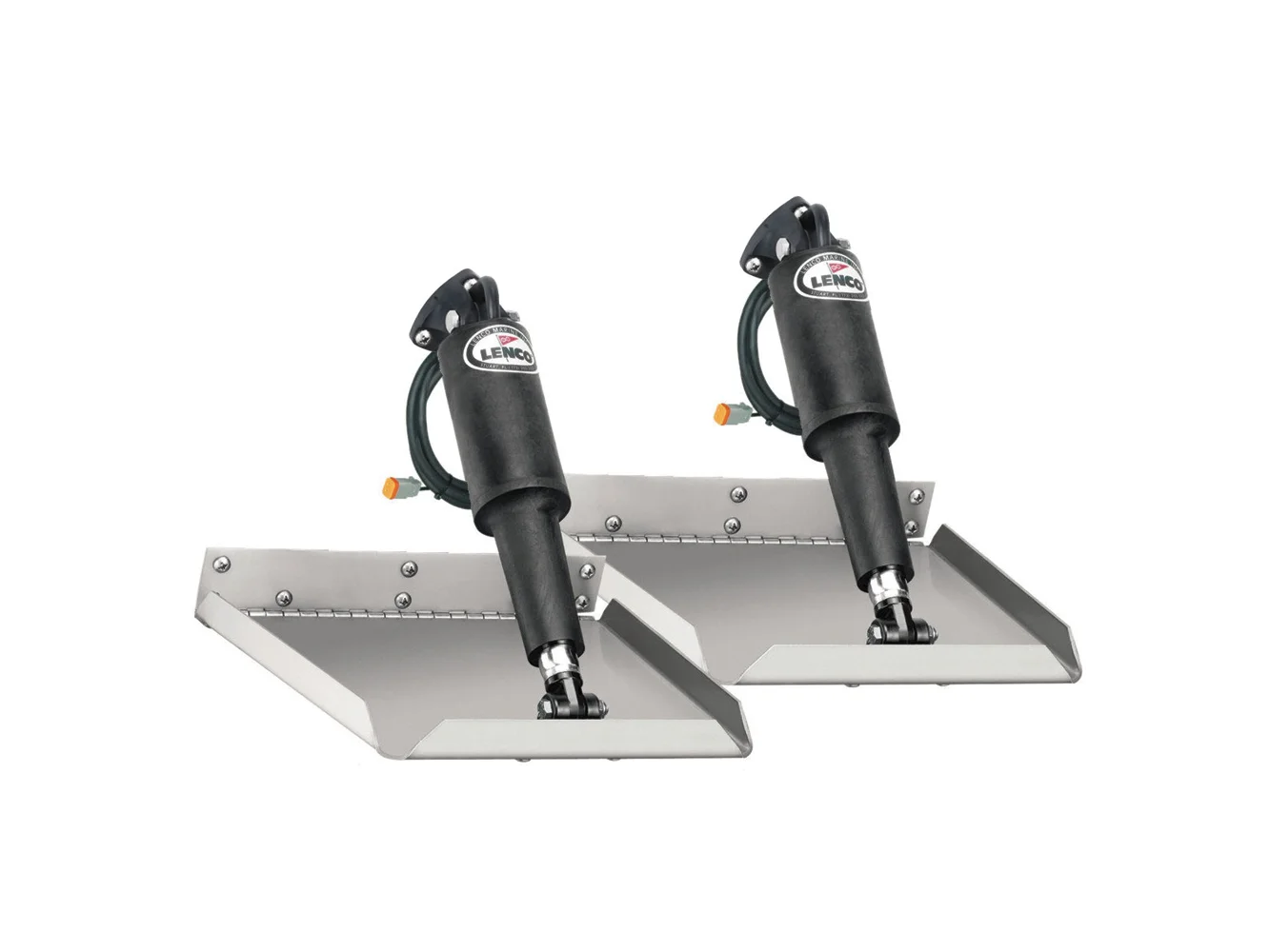 Lenco Electric Edge Mount Trim Tab Kits make your boat ride smoother, dryer, faster and with increased safety whether on a small skiff or a large yacht. The Lenco ball screw design is more reliable, three times more powerful and features an instant response, which makes them very user friendly compared to typical hydraulics. Lenco fast response electric actuators are fully submersible with all plug & play waterproof Deutsch connections. Edge Mount actuators mount at the trailing edge of the plane, requiring 4″ (10.16 cm) less transom height than Lenco standard mount trim tabs.