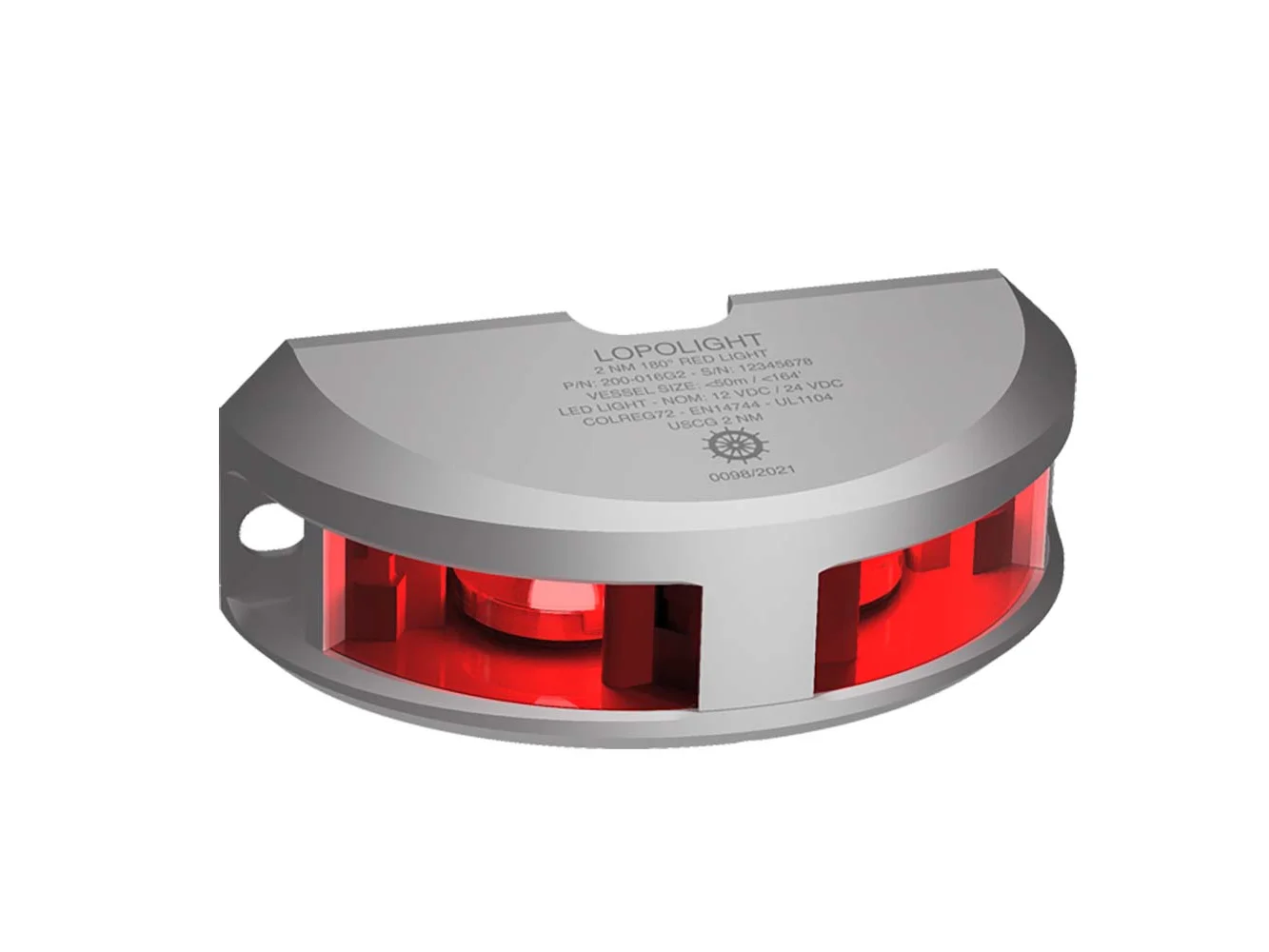 Series 200-016 – Navigation Light – 2NM – Vertical Mount – Red – Silver Housing