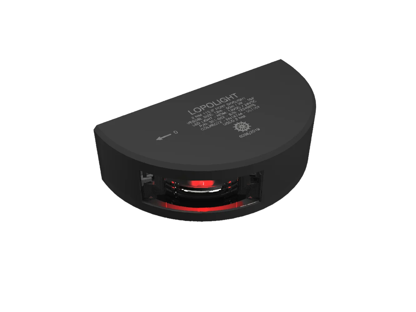 Lopolight Series 301-002 – Port Sidelight – 2NM – Vertical Mount – Red – Black Housing