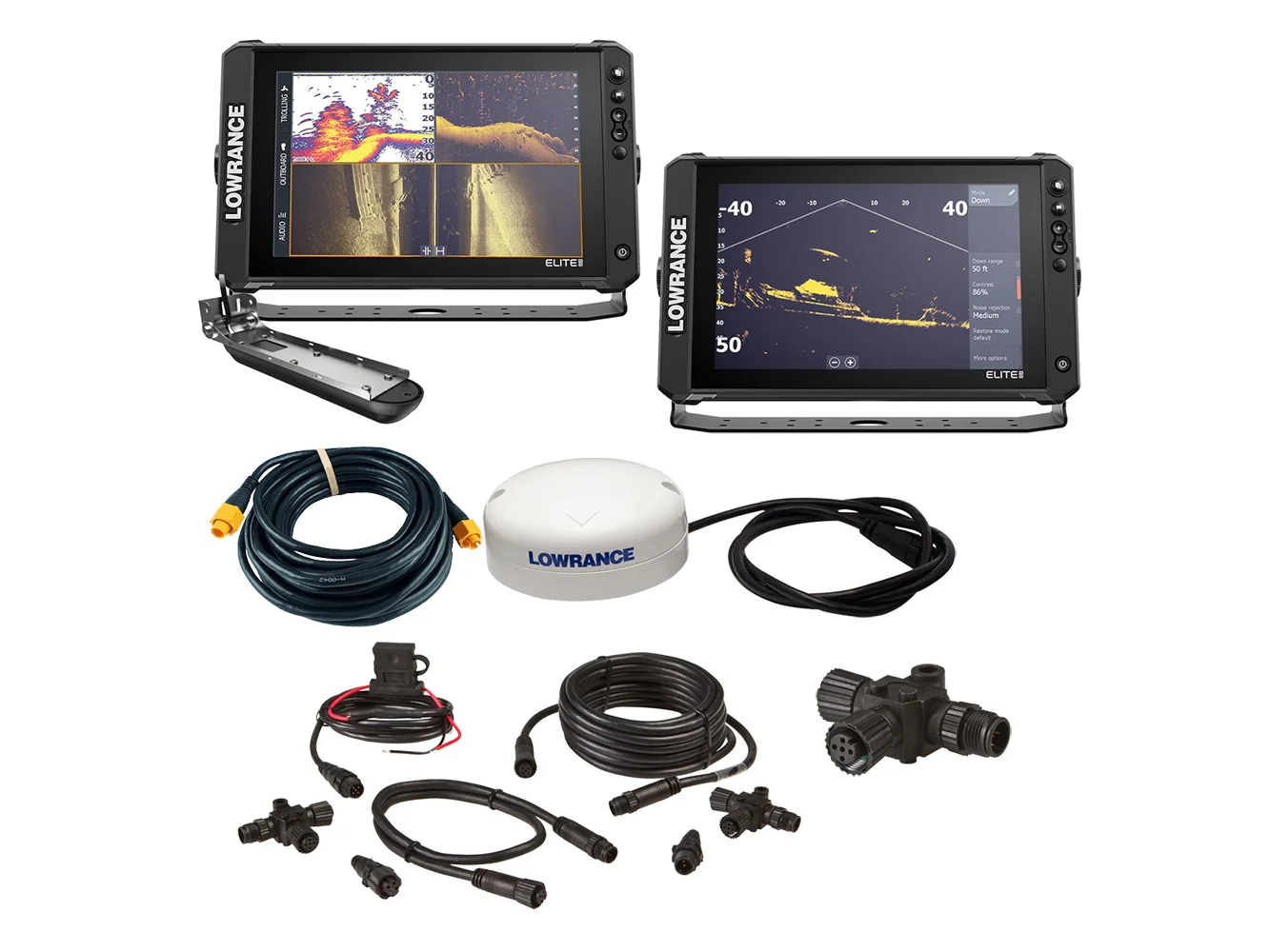 Lowrance Elite™ FS 12 BOAT in A BOX with Active Imaging 3-in-1 – 2 Displays, TD, GPS Antenna, Starter Kit, 25′ Ethernet Cable