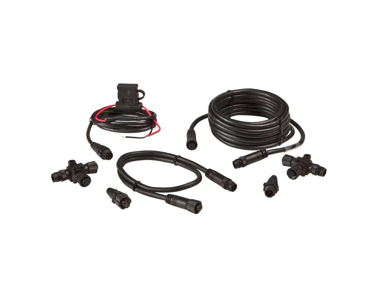 Network starter kit. Includes 2 terminating resistors (TR-120M-RD, TR-120F-RD), two T-connectors (N2K-T-RD), one 2 ft extension cable (N2KEXT-2RD), and one 15 ft extension cable (N2KEXT-15RD), and a power node (N2K-PWR-RD).