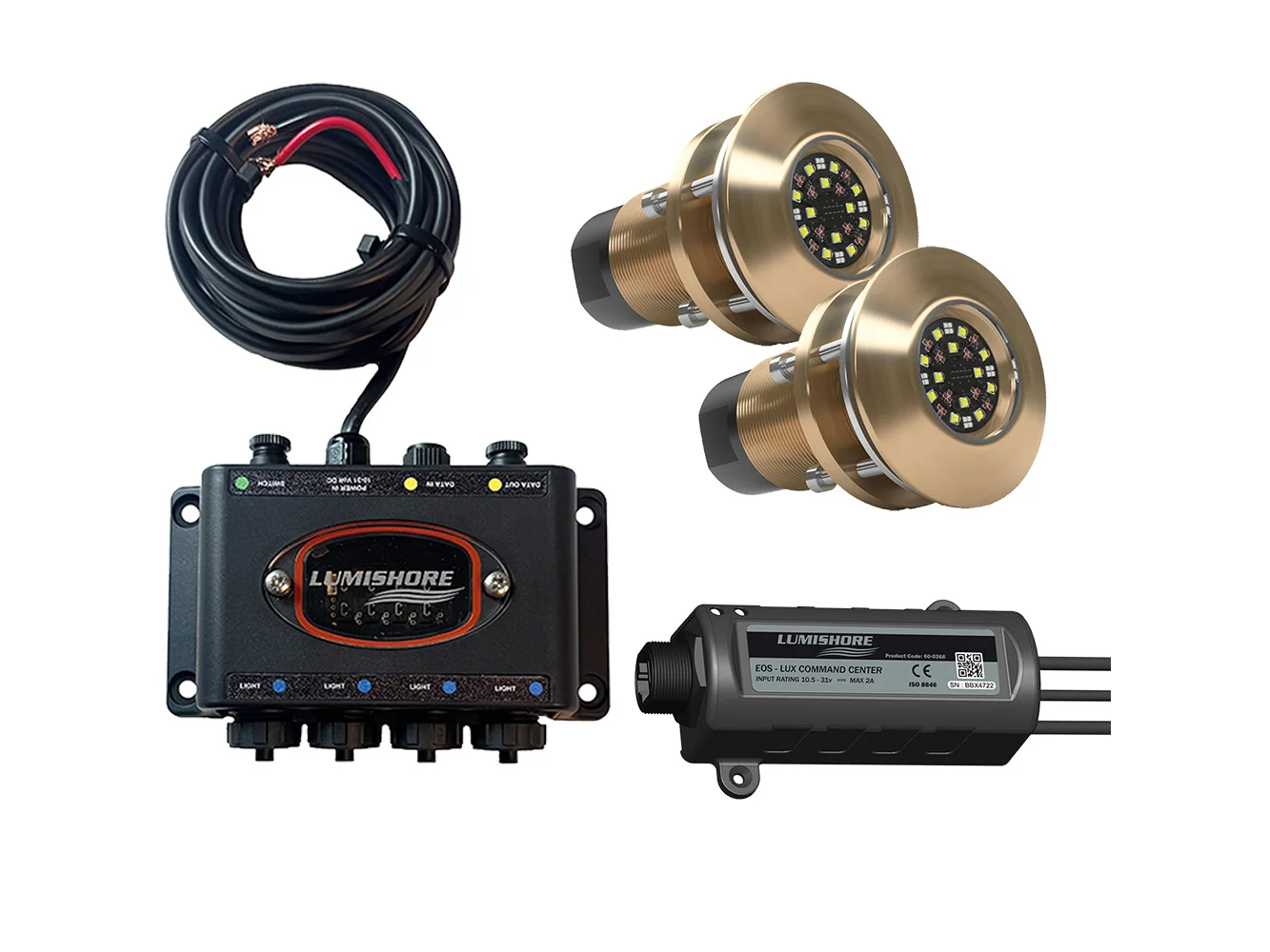 Controlled by the EOS i-Connect Hub & Switch, or directly from your compatible MFD and/or optional Lumishore Display, when you add the EOS-LUX Command Center