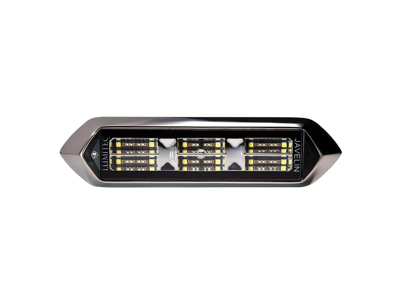 Style and performance unite to create the all-new Javelin Underwater Light Series from Lumitec. Designed for high-performance boats the Javelin Underwater Light boasts a highly polished housing and a contemporary stylish rectangular design. Leveraging the same “smart light” technology found in our market-leading SeaBlazeX2 series – Javelin offers the same high performance, full-color RGBW output, simple surface mount installation, and ease of operation only found in Lumitec products. Ideal for freshwater boats of all sizes but durable enough for saltwater applications.
