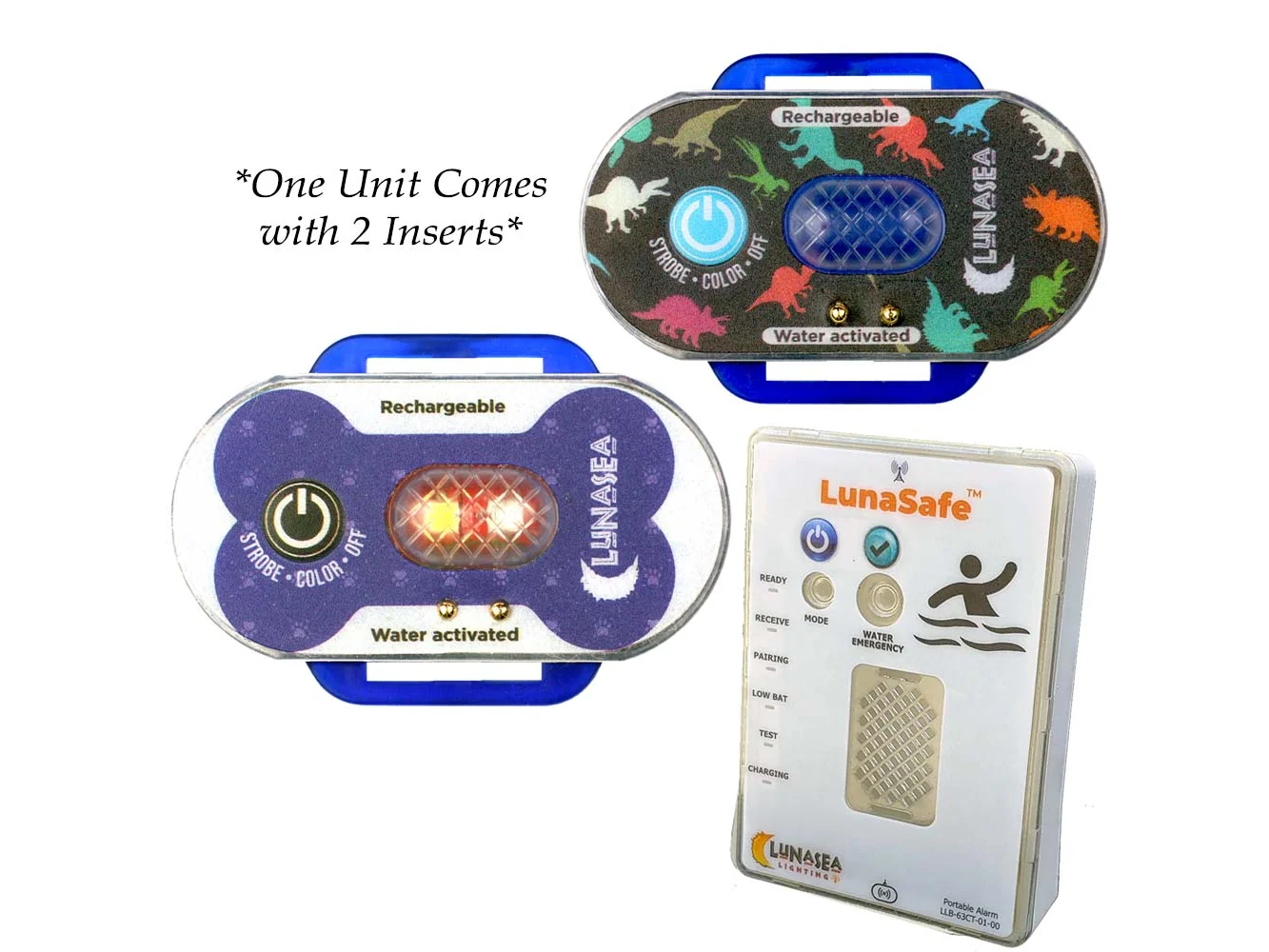 Child/Pet Safety Water Activated Strobe Light w/RF Transmitter & Portable Audio/Visual Receiver – Blue Case