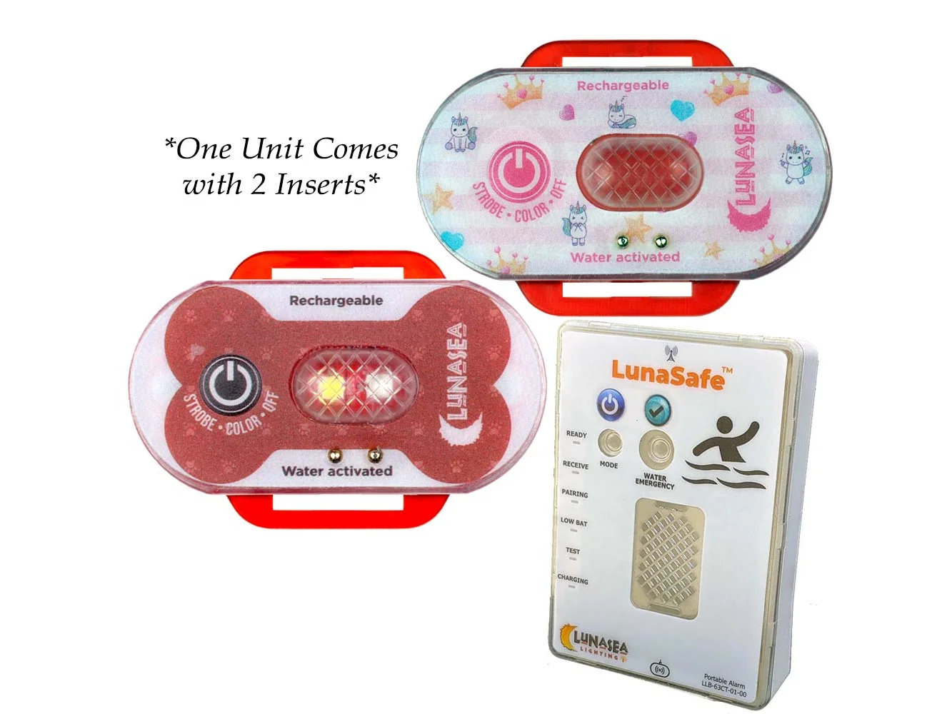 Child/Pet Safety Water Activated Strobe Light w/RF Transmitter & Portable Audio/Visual Receiver – Red Case