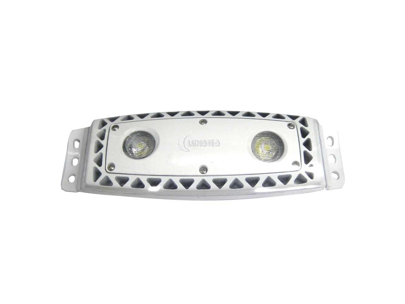 A spreader light that delivers. Designed for distance, engineered for quality. Using two of the brightest single point light source LED’s married with a lens, Lunasea puts the light where you want it – On your boat deck! Most spreader lights cast a large quantity of light outside your boat while other spreaders focus their little intensity on small areas. If polarity is swapped on the power, the light dims down which is ideal for a beautiful night sipping on a cocktail. All this while only drawing 11 watts of power.”