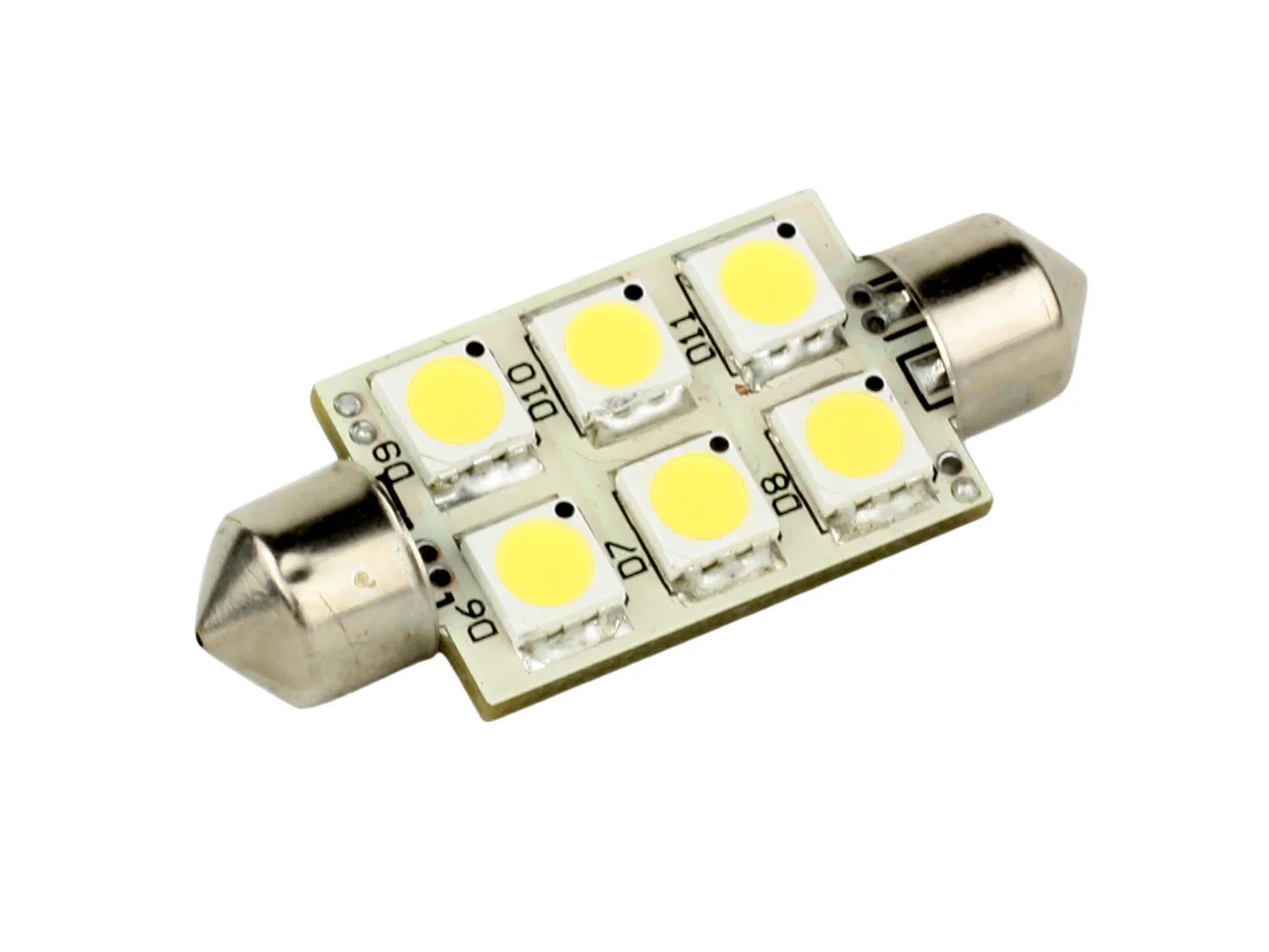 This High Power 6-LED Festoon bulb has a built in Buck Regulator making it the most robust light on the market today. Available in multiple lighting colors with red being a great choice for navigation stations or general nighttime boating.