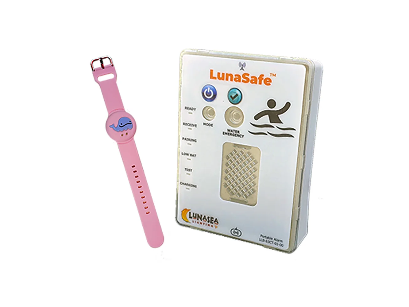 Lunasea Lighting's super soft pink silicone case, wrist strap, safety water activated transmitter for kids.