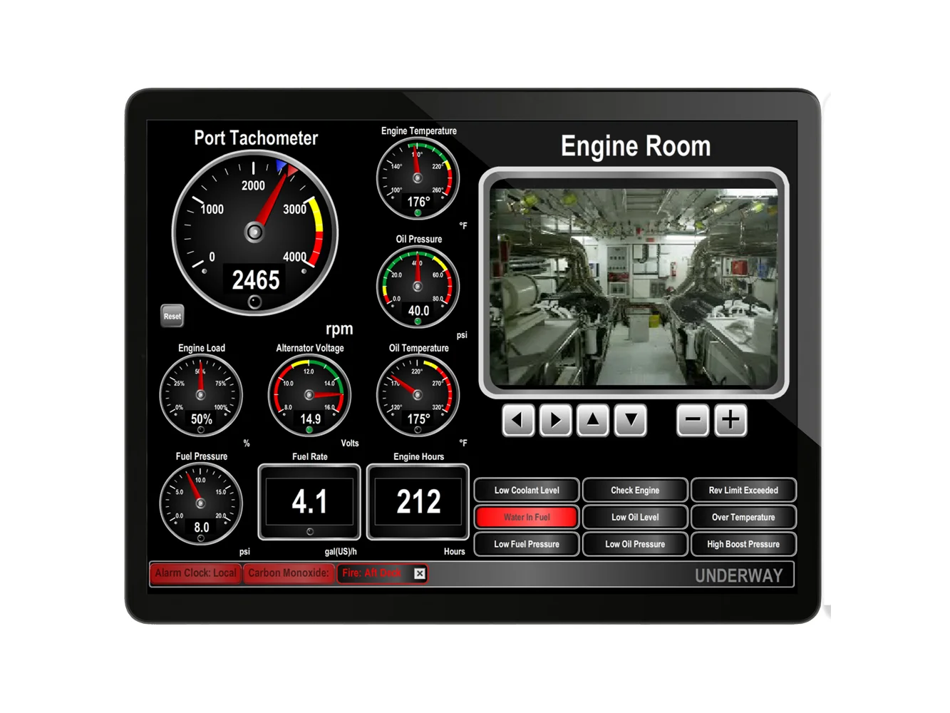 N2KView® is a comprehensive vessel monitoring and control software that goes beyond simple monitoring. With N2KView® you get additional functionality including alerts, video, control, and fuel management. The alerts functionality allows you to setup as many warnings and alarms as you need so you can be forewarned of potential problems. With alerts, you can relax knowing that the system is watching for smoke, CO, high bilge water, or anything else you deem important. N2KView® video capability allows you to add cameras as part of the monitoring system – for example a camera in the engine room – or the cameras can be used as part of the security system. The control functionality gives you the ability to manage your electrical system; for example, you can turn lights or pumps on or off directly from N2KView® and even tell if the lights or pumps are burned out and not working. Lastly, the fuel management function uses information from the fuel flow monitor, tank monitors, and GPS to provide advanced information like distance and time to empty as well as fuel rate and fuel economy.