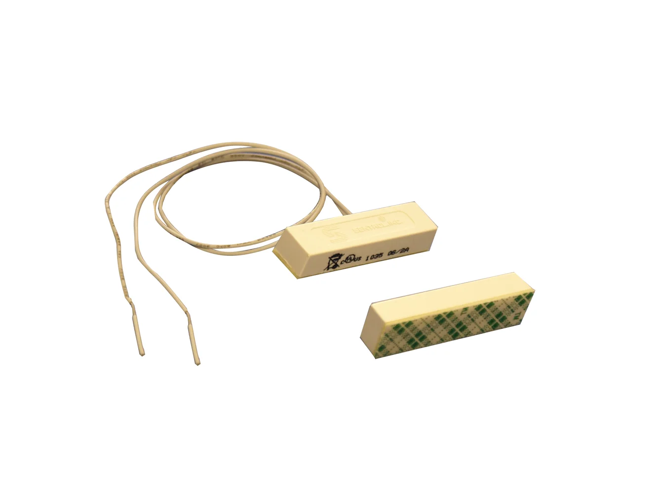 The 1035 Series magnetic contact saves installation time through the use of a specially formulated 3Mr adhesive tape. The tape, which establishes a permanent bond between the contact and the surface, can be repositioned during the first 5 minutes. A low profile and small footprint combine