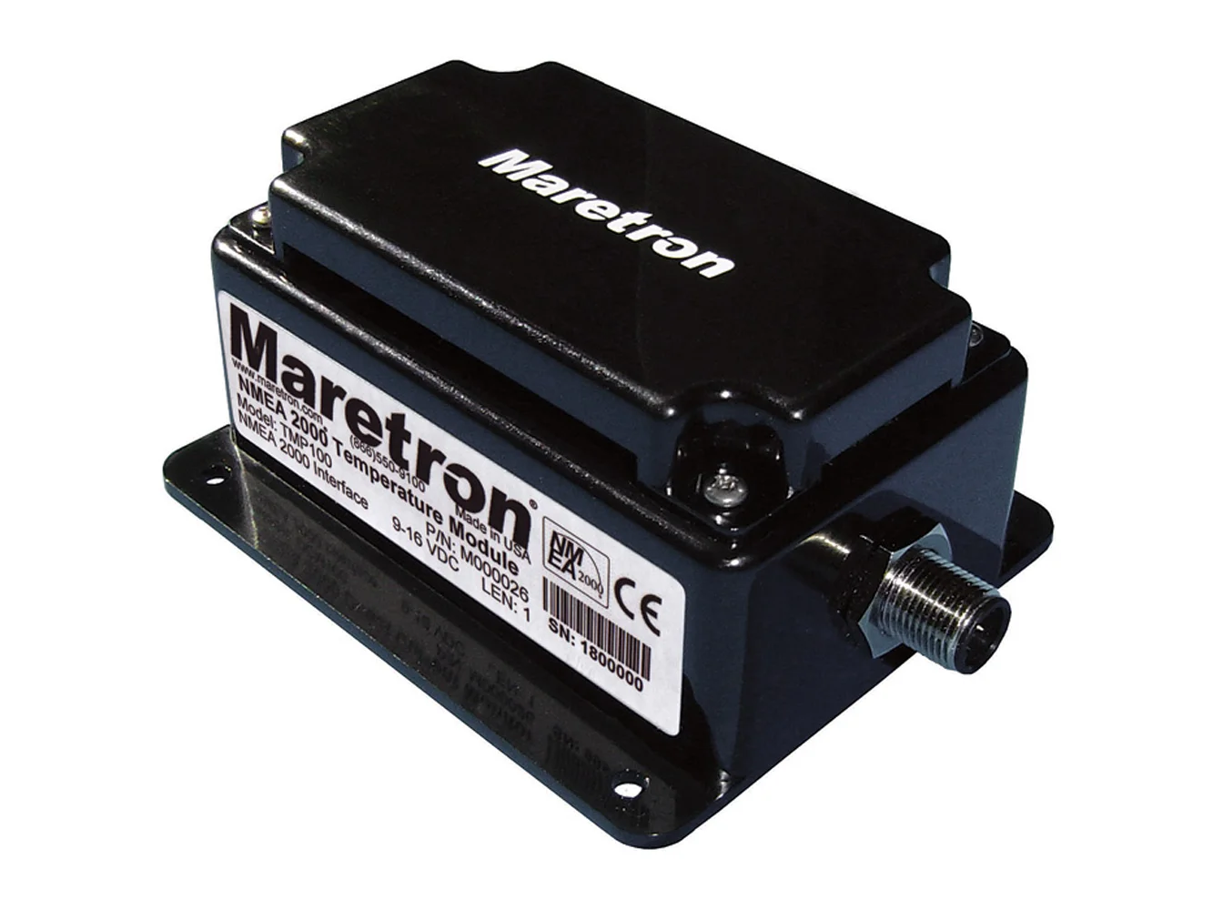 Maretron’s TMP100 measures the temperature for up to 6 temperature probes and reports the information over an NMEA 2000 network. The TMP100 supports up to 4 thermistor probes and 2 high temperature thermocouple probes. Optional thermistor probes (-20 deg. C to 80 deg. C or -4 deg. F to 176 deg. F) cover a wide range of applications including cabin air temperature, engine room air temperature, refrigerator/freezer temperature, under bolt temperature (inverters, charges, pumps, motors, etc), tank temperatures (live well bait, hot water, etc) and air duct temperatures. The optimal thermocouple probes (0 deg. C to 900 deg. C or 32 deg. F to 1652 deg. F) are used to measure Exhaust Gas Temperature (EGT) as part of a comprehensive fuel management system.
