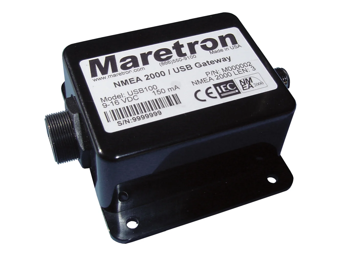 Maretron’s USB100 is a gateway for bridging USB equipment using NMEA 0183 sentences – such as an on-board computer running navigational software – with an NMEA 2000® network.