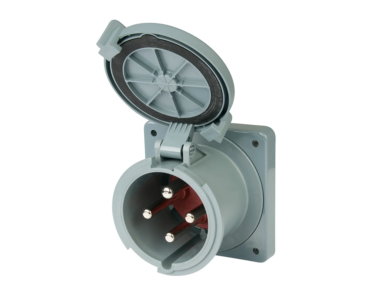 - Gray inlet has a gasketed, spring-loaded cover providing an IP67 watertight rating (withstands temporary immersion) when tightened